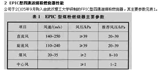 公司于2()05年9月購(gòu)入由武漢理工大學(xué)研制的FPIC型四通道煤粉燃燒器,其主要參數(shù)見(jiàn)表1。